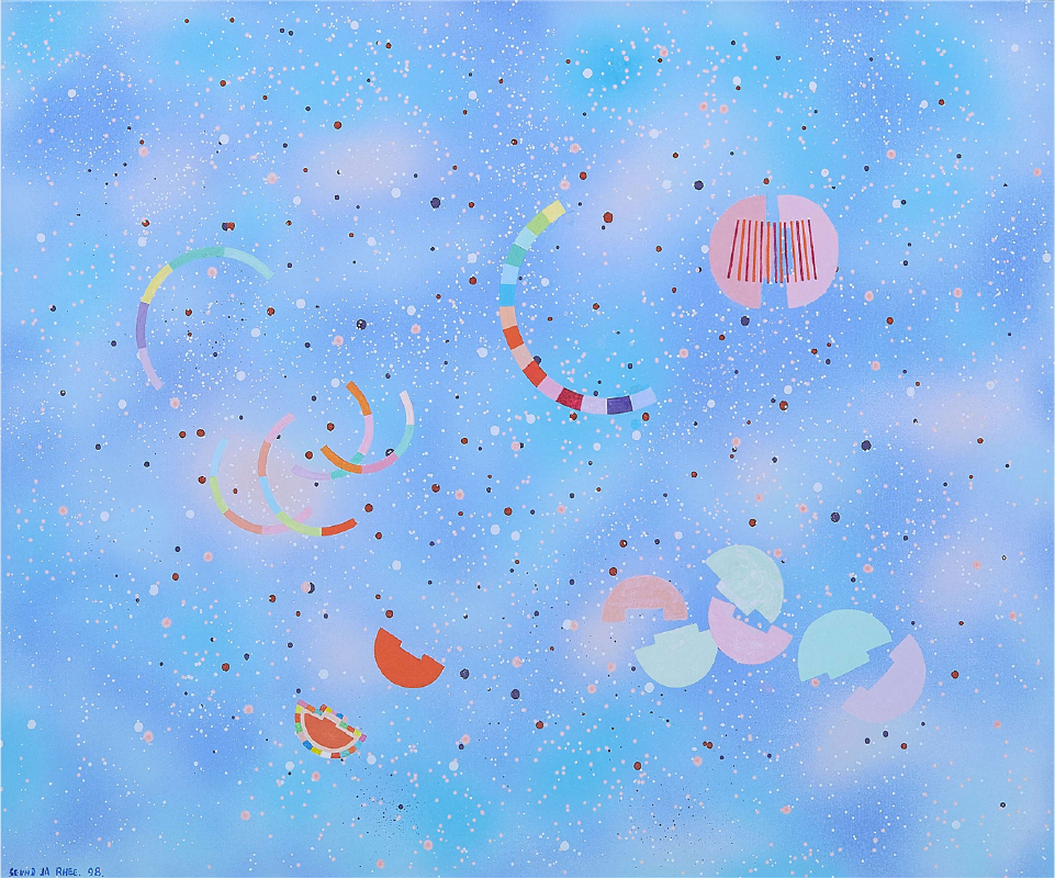 이성자, 〈혜성에 있는 나의 오두막, 12월, 98〉, 1998년, 캔버스에 아크릴릭, 73x92cm. ⓒ진주시립이성자미술관